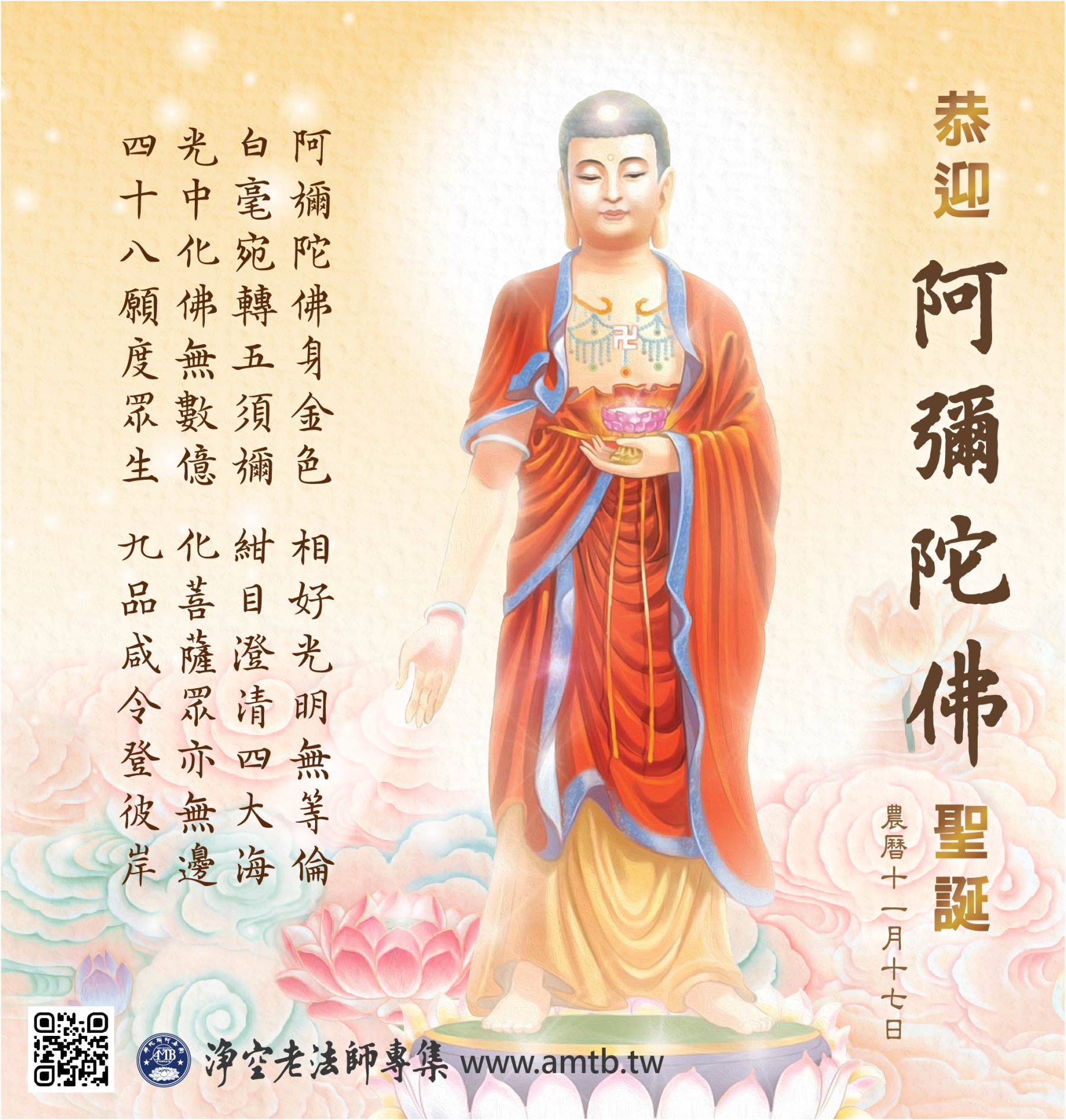 淨土宗第六代祖師永明延壽大師,是吳越王時代的人,歷史上記載這位大德是阿彌陀佛再來的,後來便把農曆十一月十七日大師的生日定為阿彌陀佛聖誕。