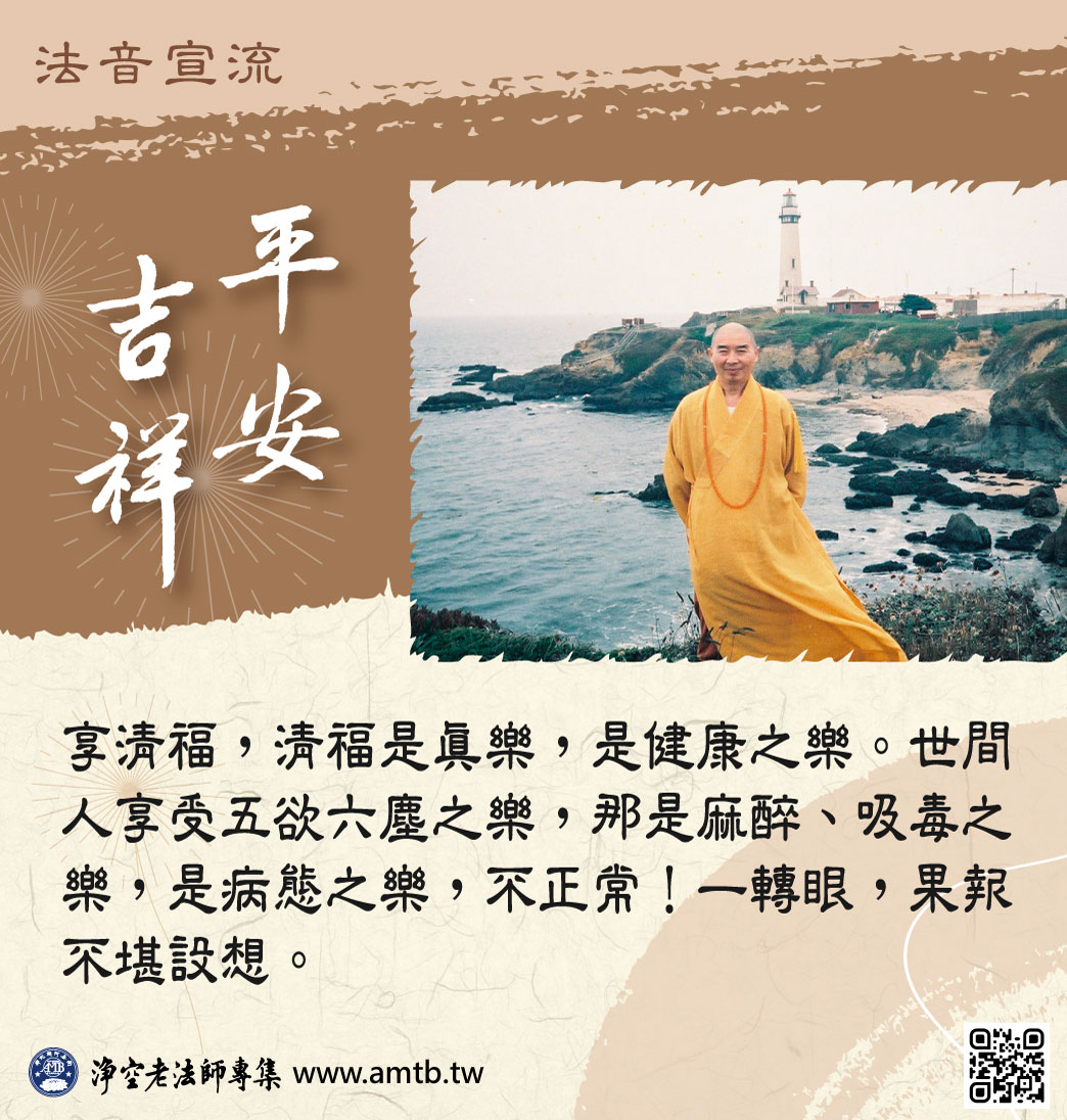 我們過的生活,別人看起來很清苦,而苦樂沒有標準,我們所受的是真正之樂。我們在享樂,享清福,清福是真樂,是健康之樂。世間人享受五欲六塵之樂,那是麻醉、吸毒之樂,是病態之樂,不正常!一轉眼,果報不堪設想。