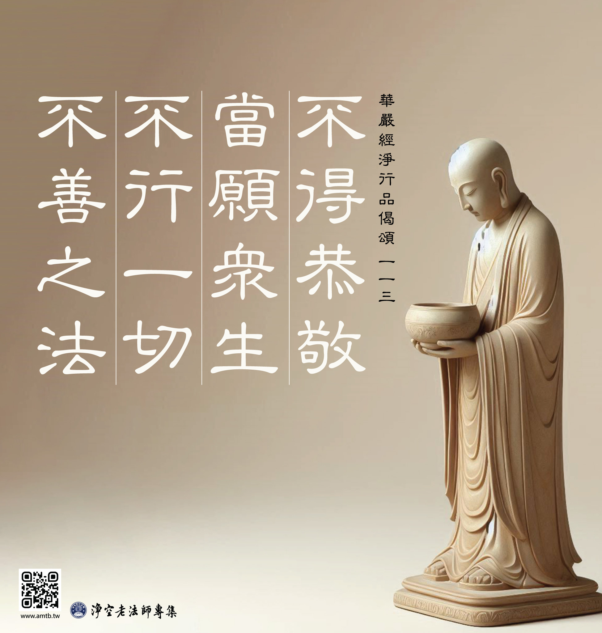 同學們都知道「普賢菩薩十大願王」是《華嚴》修行的綱領,十大願王展開就是我們現在學習的「淨行品」。淨行品一共有一百四十一願,你看十條一展開就是一百四十一,這一百四十一是細目。一個修行人在日常生活當中,你所接觸到的人、所接觸到的事、所接觸到的環境,沒有一法不能引發菩薩無盡的悲願,這個道理一定要懂。你真正懂了之後,明白之後,諸佛菩薩在哪裡?普賢菩薩在哪裡?文殊菩薩在哪裡?毘盧遮那佛在哪裡?你果然明白了,就是從早到晚六根所接觸到的境界,無一不是。毘盧遮那佛這個名號是梵語,翻成中國意思叫遍一切處。佛門的同學,也許你們聽過佛家常講無有一法不是佛法,佛法包括一切法。這個話是給誰說的?修普賢行的人說的,無有一法不是佛法。要不是修行,對凡夫來講,對凡夫來講無有一法是佛法。凡夫迷,也就是說心性上面蓋上妄想分別執著,迷失了自性,沒有一法是佛法,《華嚴經》也不是佛法,這真的。