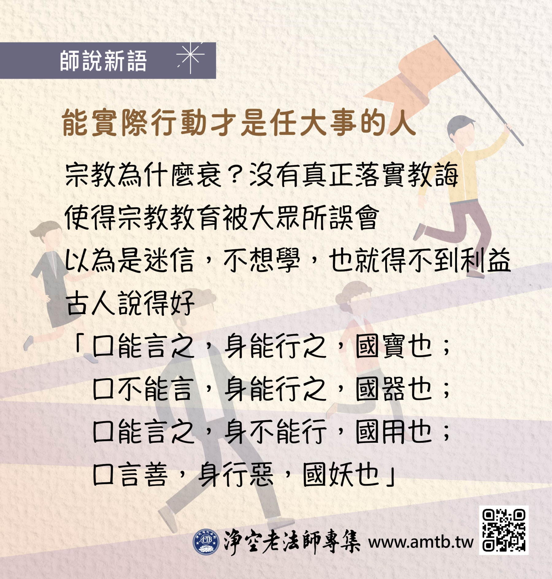佛法首先給我們一個健康的思想,純正的思想,覺正淨。心清淨,身就清淨,身心清淨⋯⋯