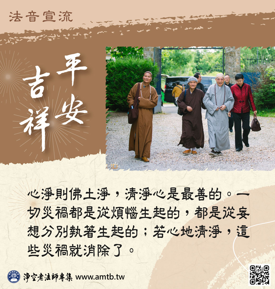 「心淨則佛土淨」,清淨心是最善的。一切災禍都是從煩惱生起的,都是從妄想分別執⋯⋯